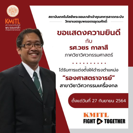 ได้รับการแต่งตั้งให้ดำรงตำแหน่ง "รองศาสตราจารย์ " สาขาวิชาวิศวกรรมเครื่องกล