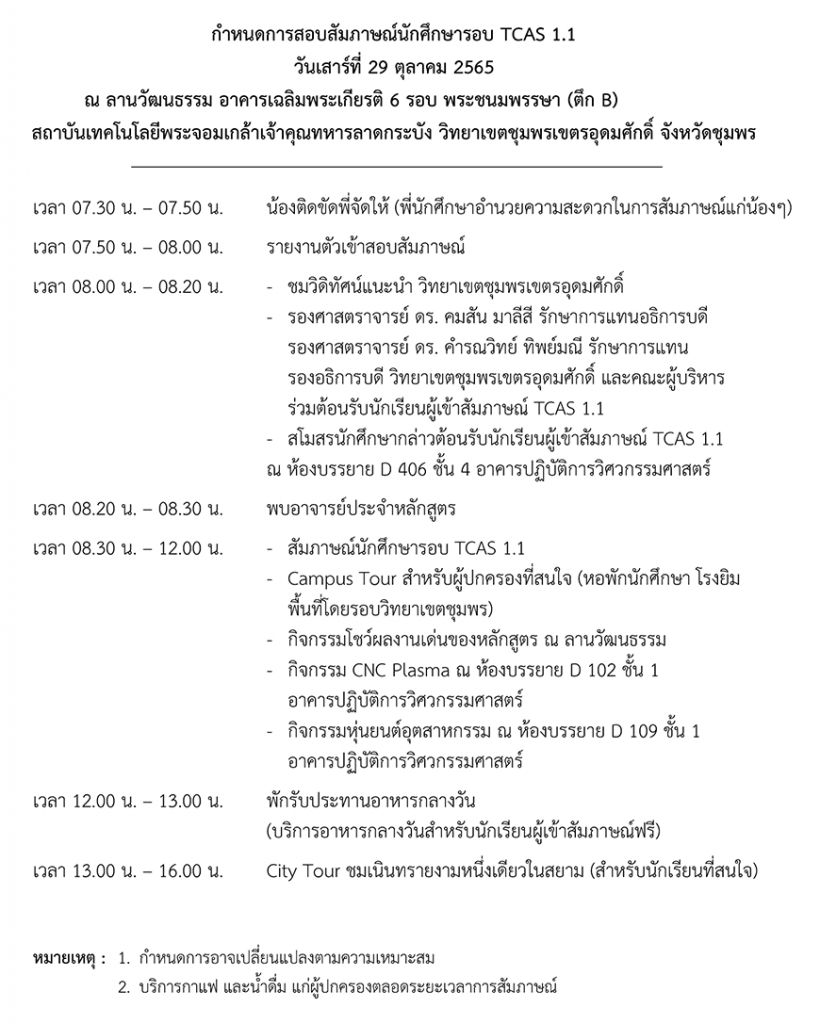 ประกาศรายชื่อ ผู้มีสิทธิ์สอบสัมภาษณ์ TCAS1 Portfolio รอบ 1.1
