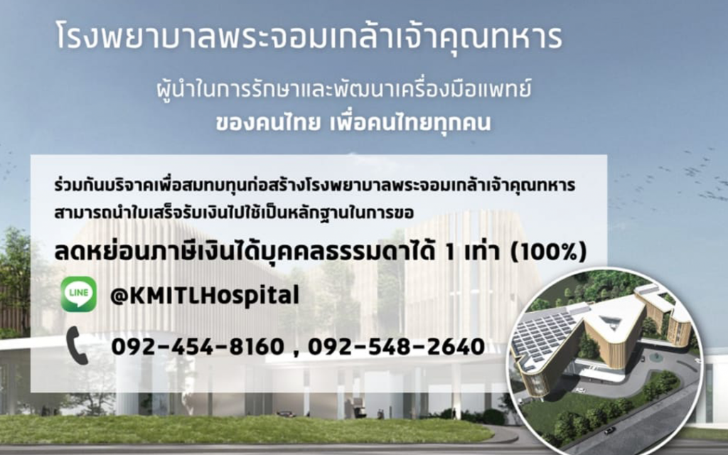 ขอเชิญร่วมบริจาคเงินสมทบทุนสร้าง โรงพยาบาลพระจอมเกล้าเจ้าคุณทหาร