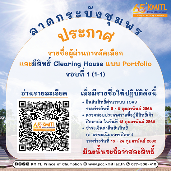 ประกาศรายชื่อผู้ผ่านการคัดเลือกและมีสิทธิ์ Clearing House TCAS1.1 รอบ PORTFOLIO