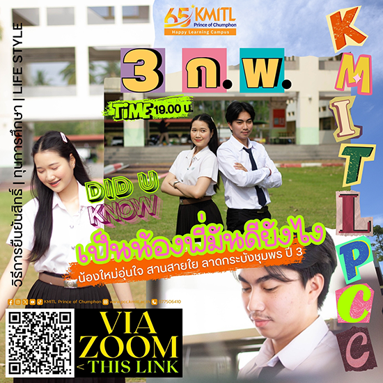 รวมทั้งรีวิวการใช้ชีวิตที่ “ลาดกระบังชุมพร” ซึ่งน้องๆ สามารถลงทะเบียนเข้าร่วมกิจกรรมแบบ เอ๊กคลูซีฟ นี้ได้โดย Scan QR Code