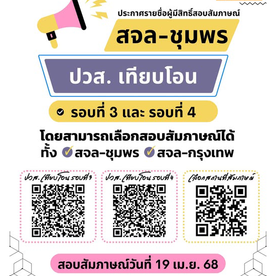 ให้ผู้รายชื่อเดินทางมาสอบสัมภาษณ์ในเสาร์ ที่ 19 เมษายน 2568 เวลา 8.30 น. เป็นต้นไป