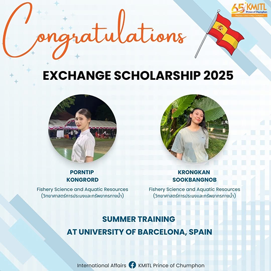 นักศึกษา สจล. – ชุมพร ได้รับทุนแลกเปลี่ยนฝึกงานต่างประเทศ ณ มหาวิทยาลัย University of Barcelona ประเทศสเปน