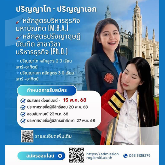 สจล. - ชุมพร เปิดรับสมัครนักศึกษาระดับปริญญาโท ปริญญาเอก