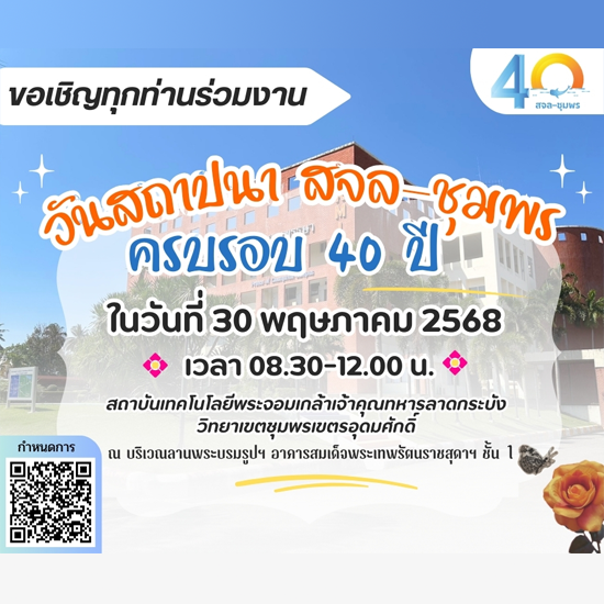 ขอเรียนเชิญทุกท่านร่วมงานวันสถาปนา สจล-ชุมพร ครบรอบ 40 ปี