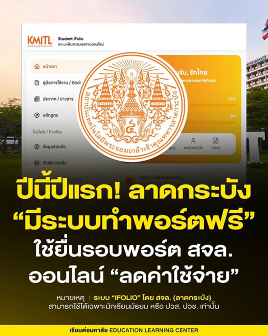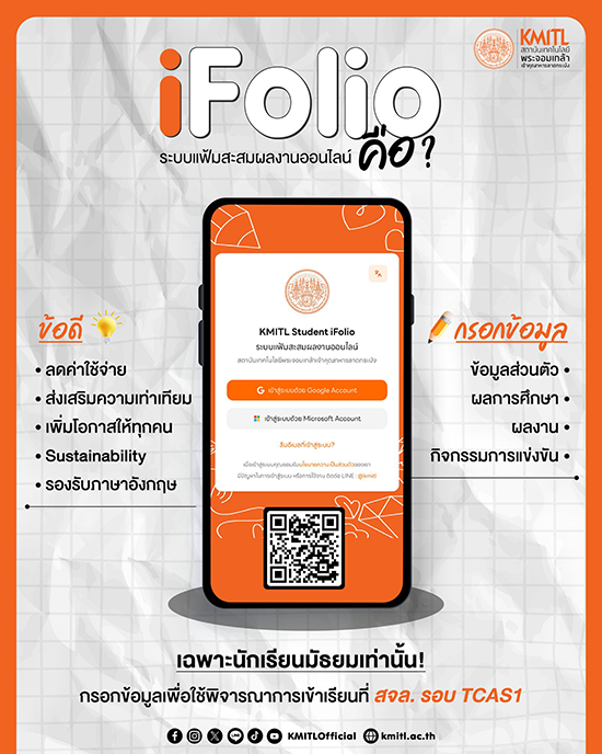 ระบบใหม่ “iFolio” ระบบทำพอร์ตออนไลน์รูปแบบใหม่ เปิดใช้งานปีนี้ปีแรก ฟรี! ไม่มีค่าใช้จ่าย โดยสถาบันเทคโนโลยีพระจอมเกล้าเจ้าคุณทหารลาดกระบัง