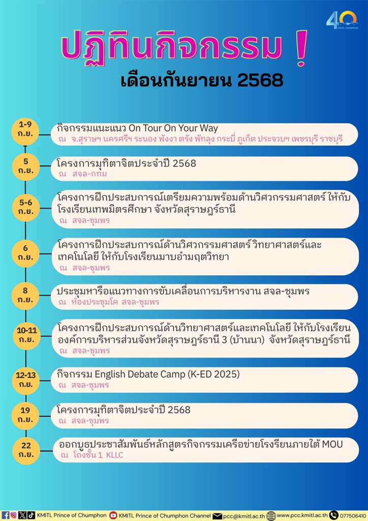 ปฏิทินกิจกรรม เดือนกันยายน 2568