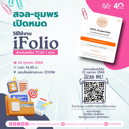 "สจล-ชุมพร" เปิดหมด วิธีใช้งาน iFolio - ระบบแฟ้มสะสมผลงาน สำหรับน้องๆ ที่สนใจสมัคร TCAS 1 รอบ Portfolio กับสจล.