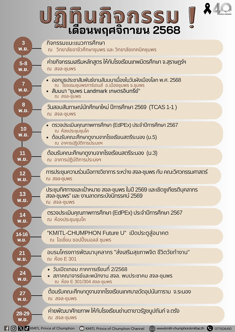 ปฏิทินกิจกรรม เดือนพฤศจิกายน 2568