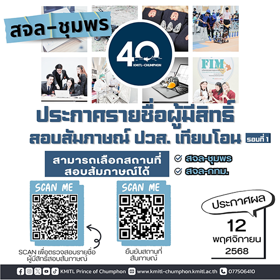 ✔✔โดยสามารถเลือกสัมภาษณ์ได้ทั้ง สจล-ชุมพร และ สจล-กรุงเทพ