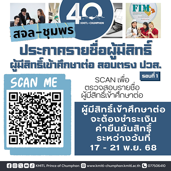 เมื่อมีรายชื่อให้ดำเนินการตามประกาศพร้อมยืนยันสิทธิ์เข้าศึกษาและชำระเงินค่าธรรมเนียมการศึกษาล่วงหน้า