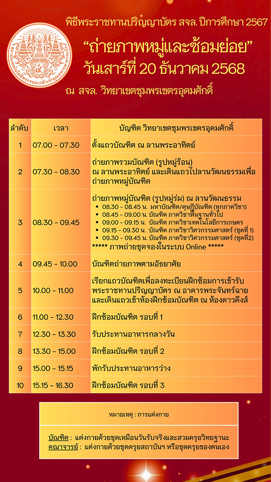 กำหนดการซ้อมย่อยและถ่ายภาพหมู่บัณฑิต สจล-ชุมพร