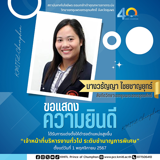 ได้รับการแต่งตั้งให้ดำรงตำแหน่ง เจ้าหน้าที่บริหารงานทั่วไป ระดับชำนาญการพิเศษ