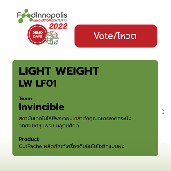 โหวต LWLF01 ทีม Invincible นักศึกษาหลักสูตรนวัตกรรมอาหารและการจัดการ