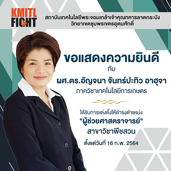 ได้รับการแต่งตั้งให้ดำรงตำแหน่ง “ผู้ช่วยศาสตราจารย์” สาขาวิชาพืชสวน