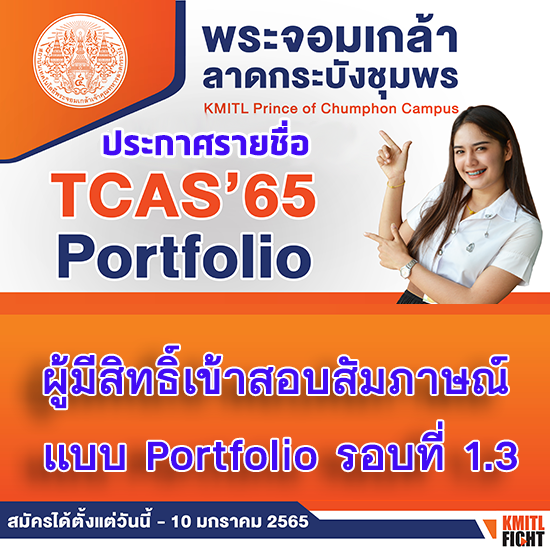 ประกาศรายชื่อผู้มีสิทธิ์สอบเข้าศึกษาต่อ TCAS แบบ Portfolio รอบ 1.3