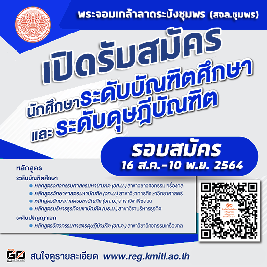 รับสมัครเข้าศึกษาต่อระดับบัณฑิตศึกษา รับสมัคร 16 สิงหาคม–10 พฤศจิกายน 2564