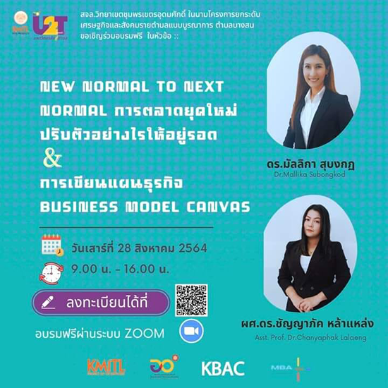 หัวข้อ New normal to Next normal การตลาดยุคใหม่ ปรับตัวอย่างไรให้อยู่รอด และการเขียนแผนธุรกิจ Business Model Canvas (BMC)