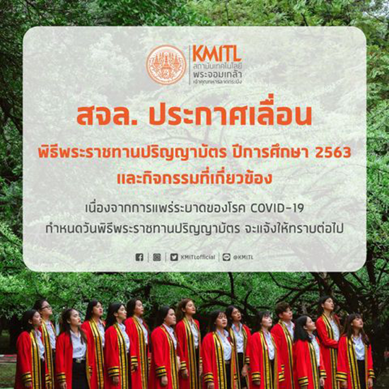 ประกาศเลื่อนพิธีพระราชทานปริญญาบัตร ปีการศึกษา 2563