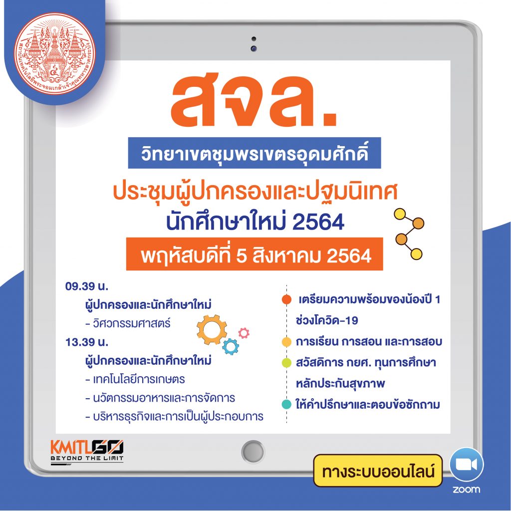 วันที่ 9 สิงหาคม 2564 เวลา 09.09 – 12.00 น. ชมไลฟ์สดได้ที่ https://www.facebook.com/KMITLPrinceofChumphon