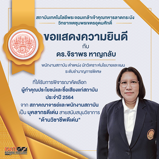 ่ดร.จิราพร หาญกลับ ได้รับการพิจารณาคัดเลือกผู้ทำคุณประโยชน์และชื่อเสียงแก่สถาบัน “ด้านวิชาชีพดีเด่่น” ประจำปี 2564