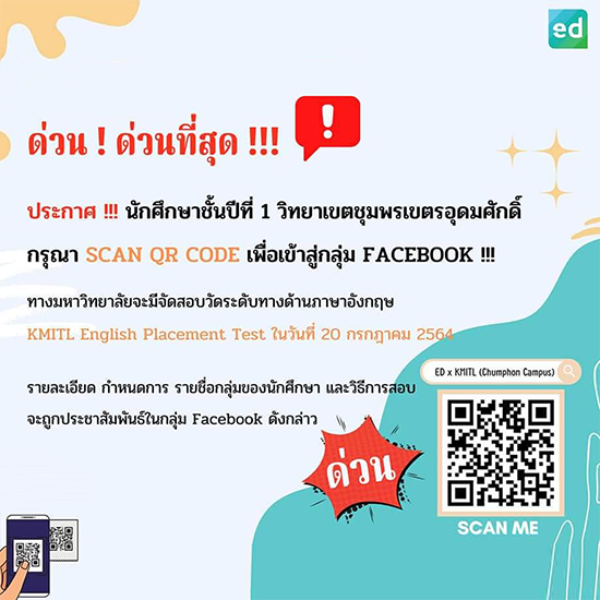 สอบวัดระดับทางด้านภาษาอังกฤษ KMITL English Placement Test วันที่ 20 กรกฎาคม 2564