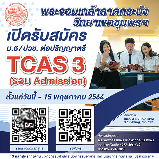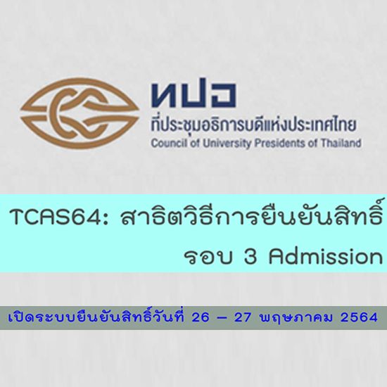 รับสมัครเข้าศึกษาต่อในระดับปริญญาตรี TCAS3 Admission ประจําปีการศึกษา 2564