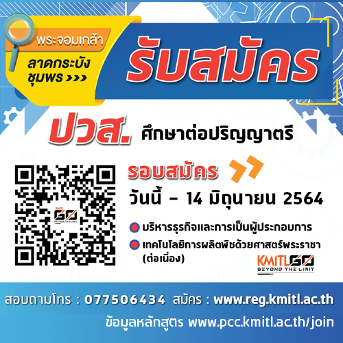 การรับสมัครเพื่อคัดเลือกเข้าศึกษาต่อในระดับปริญญาตรี (แบบรับตรง-ปวส.) รอบที่ 4 วิทยาเขตชุมพรเขตรอุดมศักดิ์ ประจำปีการศึกษา 2564