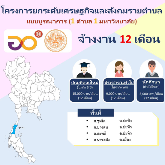 รับสมัครบุคคลเป็นพนักงาน โครงการยกระดับเศรษฐกิจและสังคมรายตำบลแบบบูรณาการ (1 ตำพล 1 มหาวิทยาลัย)